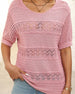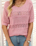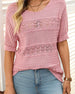 Kortärmad Virkad Tröja Med Rund Hals Och Hålstickning För Dam