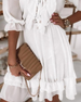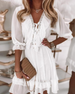 SPECIFIKATIONER Stil: Enkel Material: Bomullsblandningar Klänningstyp: A-linje Klänning längd: Över knä Urringning: V-hals_V Mönstertyp: Enfärgade Typ av ärm: Vanlig ärm Ärmlängd: Halvärm Detaljer: Snöra upp,Rufsad,Spets Passform typ: Vanlig Säsong: Vår,Sommar Tillfälle: Dagligen Paketet innehåller: 1 x Klänning STORLEKSTABELL(cm) Storl...