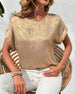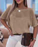 Stickade Toppar Rund Halsringning Hålig Kortärmad