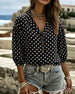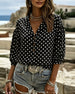SPECIFIKATIONER Topptyp: Blusar Stil: Enkel Material: Bomullsblandningar Tillfälle: Dagligen Urringning: V-hals_V Mönstertyp: Polka prickig Typ av ärm: Lykthylsa Ärmlängd: 3/4 ärm Passform typ: Vanlig Säsong: Vår,Sommar Detaljer: Knappar Paketet innehåller: 1 x Blus STORLEKSTABELL(cm) Storlek Byst Längd S 97 65 M 101 66.5 L 105 68 ...