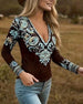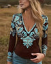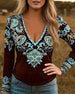 Topp Djup V-Ringad Etnisk Stil Långärmad