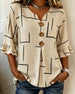 SPECIFIKATIONER Topptyp: Blusar Stil: Enkel Material: Bomullsblandningar Tillfälle: Dagligen Urringning: V-hals_V Mönstertyp: Randig Typ av ärm: Volangärm Ärmlängd: 3/4 ärm Passform typ: Vanlig Säsong: Vår,Sommar Detaljer: Knappar,Blandade Paketet innehåller: 1 x Blus STORLEKSTABELL(cm) Storlek Byst Längd S 97 65 M 101 66.5 L 105 68...