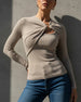 T-Shirt Dam Lång Ärm Ribbad Stickad Sväng Fram