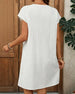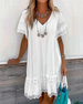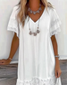 SPECIFIKATIONER Stil: Enkel Material: Bomullsblandningar Klänningstyp: T-shirt Klänning längd: Knälängd Urringning: V-hals_V Mönstertyp: Enfärgade Typ av ärm: Fjärilsärm Ärmlängd: Kortärmad Detaljer: Spets Passform typ: Lös Säsong: Vår,Sommar Tillfälle: Dagligen Paketet innehåller: 1 x Klänning STORLEKSTABELL(cm) Storlek Byst Längd S ...
