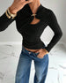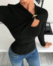 STORLEKSGUIDE EGENSKAPER Unik Flätad Framdel: Den metalliska ringen och det flätade tyget skapar ett elegant urringning, drar uppmärksamheten till halsringningen och ger en sofistikerad och modern touch till din outfit för en iögonfallande look. Mjuk Rippad Stickning: Tillverkad av ett bekvämt ribbat material, erbjuder denna topp ett mju...