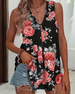 Blusar Med Rosentryck, V-Ringning Och Ärmlös