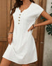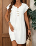 SPECIFIKATIONER Stil: Enkel Material: Bomull Klänningstyp: A-linje Klänning längd: Över knä Urringning: V-hals_V Mönstertyp: Enfärgade Typ av ärm: Vanlig ärm Ärmlängd: Kortärmad Detaljer: Knappar Passform typ: Vanlig Säsong: Vår,Sommar Tillfälle: Dagligen Paketet innehåller: 1 x Klänning STORLEKSTABELL(cm) Storlek Byst Längd S 97 95 M 10...