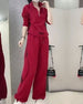 Herr Tvådelad Casual Våffla Skjorta Byxa Set