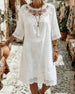 SPECIFIKATIONER Stil: Enkel Material: Bomullsblandningar Klänningstyp: Skiftklänning Klänning längd: Knälängd Urringning: Rund nacke Mönstertyp: Enfärgade Typ av ärm: Vanlig ärm Ärmlängd: 3/4 ärm Detaljer: Urgröpande,Spets Passform typ: Vanlig Säsong: Vår,Sommar Tillfälle: Dagligen Paketet innehåller: 1 x Klänning STORLEKSTABELL(cm) Storlek ...