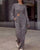 Set Geometrisk Print Långa Blusar Med Vida Byxor