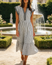 SPECIFIKATIONER Stil: Enkel Material: Bomullsblandningar Klänningstyp: A-linje Klänning längd: Midi Urringning: V-hals_V Mönstertyp: Randig Typ av ärm: Volangärm Ärmlängd: Kortärmad Detaljer: Blandade Passform typ: Vanlig Säsong: Vår,Sommar Tillfälle: Dagligen Paketet innehåller: 1 x Klänning STORLEKSTABELL(cm) Storlek Byst Midjeomkret...