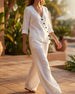 Blusar Enfärgad Bomullslinne Träknappar Rynkningar
