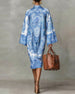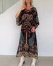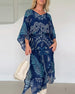 SPECIFIKATIONER Stil: Boho Material: Bomullsblandningar Klänningstyp: Skiftklänning Klänning längd: Maxi Urringning: V-hals_V Mönstertyp: Löv,Tryckt Typ av ärm: Fladdermushylsa Ärmlängd: 3/4 ärm Detaljer: Snöra upp Passform typ: Lös Säsong: Vår,Sommar,Höst,Vinter Tillfälle: Dagligen Paketet innehåller: 1 x Klänning STORLEKSTABELL(cm) Storlek...