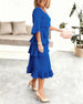 SPECIFIKATIONER Stil: Elegant Material: Bomullsblandningar Klänningstyp: A-linje Klänning längd: Midi Urringning: Rund nacke Mönstertyp: Enfärgade Typ av ärm: Slits ärmar Ärmlängd: Halvärm Detaljer: Rufsad Passform typ: Vanlig Säsong: Vår,Höst Tillfälle: Dagligen Paketet innehåller: 1 x Klänning STORLEKSTABELL(cm) Storlek Byst Längd S 9...