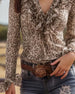 Blus Ryschad V-Ringning Leopardtryck