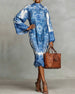 Kragklänning I Denim Med Flätstickning Och Lappverk