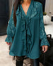 SPECIFIKATIONER Topptyp: Blusar Stil: Elegant Material: Bomullsblandningar Tillfälle: Dagligen Urringning: V-hals_V Mönstertyp: Enfärgade Typ av ärm: Lykthylsa Ärmlängd: Långärmad Passform typ: Vanlig Säsong: Höst,Vinter Detaljer: Spets Paketet innehåller: 1 x Blus STORLEKSTABELL(cm) Storlek Byst Längd S 97 65 M 101 66.5 L 105 68 XL ...