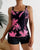 Tankini Sport Kontrast Färg Tryckt Kjol