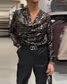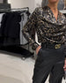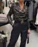 Skjort Stilfull Leopardtryck Med Draperad Krage