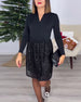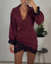 Klänning Med Veckad V-Hals Design, Spets Panel Detalj Och Elegant Stämning