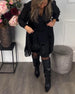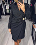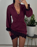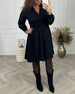 SPECIFIKATIONER Stil: Elegant,Fest Material: Bomullsblandningar Klänningstyp: Skiftklänning Klänning längd: Knälängd Urringning: V-hals_V Mönstertyp: Enfärgade Typ av ärm: Vanlig ärm Ärmlängd: Långärmad Detaljer: Snöra upp,Rufsad Passform typ: Lös Säsong: Vår,Höst,Vinter Tillfälle: Dagligen,Fest Paketet innehåller: 1 x Klänning STORLEKSTABELL(...