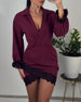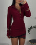 SPECIFIKATIONER Stil: Elegant,Fest Material: Bomullsblandningar Klänningstyp: Asymmetrisk Klänning längd: Över knä Urringning: Slag Mönstertyp: Enfärgade Typ av ärm: Vanlig ärm Ärmlängd: Långärmad Detaljer: Lappverk,Knappar,Spets Passform typ: Vanlig Säsong: Vår,Höst,Vinter Tillfälle: Dagligen,Fest Paketet innehåller: 1 x Klänning STORLEKSTABE...