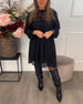 SPECIFIKATIONER Stil: Elegant,Fest Material: Bomullsblandningar,Chiffong Klänningstyp: Skiftklänning Klänning längd: Knälängd Urringning: Ståkrage Mönstertyp: Enfärgade Typ av ärm: Puffärm Ärmlängd: Långärmad Detaljer: Lappverk,Spets Passform typ: Vanlig Säsong: Vår,Höst,Vinter Tillfälle: Dagligen,Fest Paketet innehåller: 1 x Klänning STORLEKS...