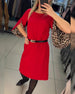 Klänning Rund Halsringning Långa Ärmar Knuten Midja