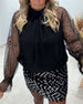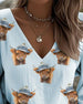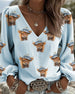 V-Ringad Blus Med Djurmönster Och Puffärmar