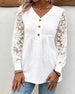 SPECIFIKATIONER Topptyp: Blusar Stil: Enkel Material: Bomullsblandningar Tillfälle: Dagligen Urringning: V-hals_V Mönstertyp: Enfärgade Typ av ärm: Vanlig ärm Ärmlängd: Långärmad Passform typ: Vanlig Säsong: Höst,Vinter Detaljer: Knappar,Urgröpande,Spets Paketet innehåller: 1 x Blus STORLEKSTABELL(cm) Storlek Byst Längd S 92 65 M 96 66.5...