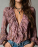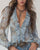 Blus Djup V Rynktryck Elegant