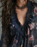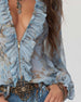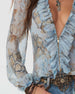 Blus Blommig V-Ringning Ryschad