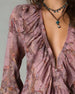 Mönstrad Långärmad Blus Med Dragkedja Och Volanger