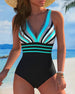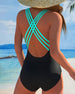 En-Delad Badkläder Färgblock Prickig