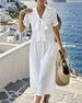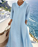 SPECIFIKATIONER Stil: Enkel Material: Bomullsblandningar Klänningstyp: A-linje Klänning längd: Maxi Urringning: Peter Pan krage Mönstertyp: Enfärgade Typ av ärm: Vanlig ärm Ärmlängd: 3/4 ärm Detaljer: Urklipp Passform typ: Vanlig Säsong: Vår,Sommar Tillfälle: Dagligen Paketet innehåller: 1 x Klänning STORLEKSTABELL(cm) Storlek Byst Längd S...