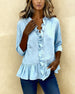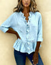 Bohemisk V-Ringad Blus Med Utsvängda Ärmar