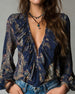 Blus med modernt tryck och v-ringning, långärmad