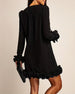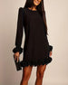 Moderiktig enfärgad klänning med paljett och fjäderpatchwork