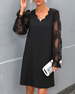 SPECIFIKATIONER Stil: Elegant, Fest, Sexig, Kontor Material: Bomullsblandningar, Spets Klänningstyp: Slå in Klänning längd: Knälängd Urringning: V-hals_V Mönstertyp: Enfärgade Typ av ärm: Vanlig ärm Ärmlängd: Långärmad Detaljer: Lappverk, Slits, Blandade, Spets Passform typ: Vanlig Säsong: Vår, Sommar, Höst, Vinter Tillfälle: Dagligen, Arbete...