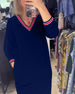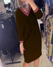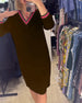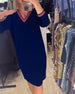 SPECIFIKATIONER Stil: Enkel Material: 5% Spandex, 95% Polyester Klänningstyp: Skiftklänning Klänning längd: Knälängd Urringning: V-hals_V Mönstertyp: Randig Typ av ärm: Vanlig ärm Ärmlängd: 3/4 ärm Detaljer: Ficka Passform typ: Vanlig Säsong: Höst,Vinter Tillfälle: Dagligen Paketet innehåller: 1 x Klänning STORLEKSTABELL(cm) Sto...