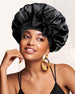 EGENSKAPER "Jag är helt nöjd med min nya huva! Tyget är otroligt mjukt och smidigt, vilket ger en lyxig känsla. Sedan jag använde den vaknar jag upp med betydligt mindre frizz och hårbrott. Den sitter säkert på plats hela natten utan att kännas stram eller obekväm ." Den här motorhuven kommer att sitta kvar! Vi presenterar vår premiumm...