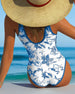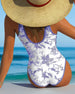 En-Delad Badkläder V-Ringning Blomstertryck