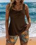 Tankini Fyrkantig Hals Ribbad Tryck Strand