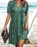 V-ringad lång klänning i tryck med kort ärm