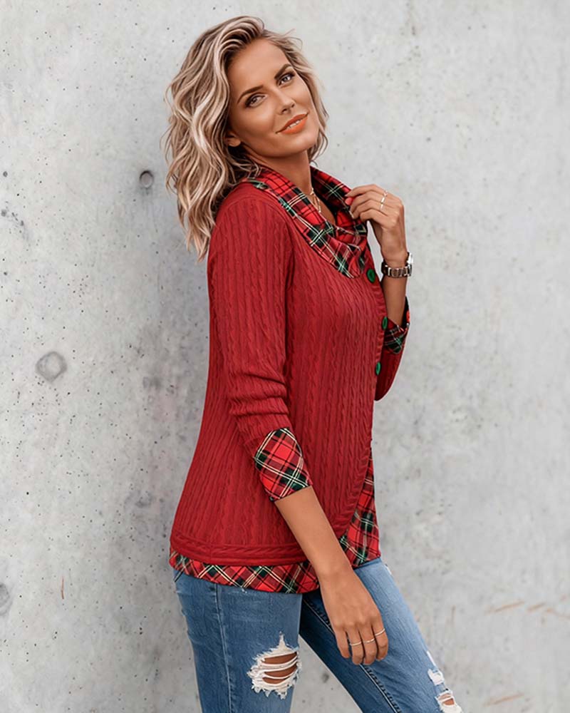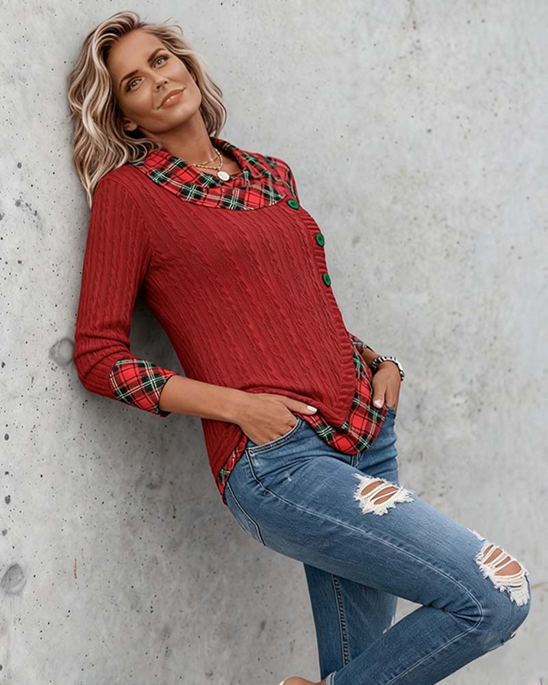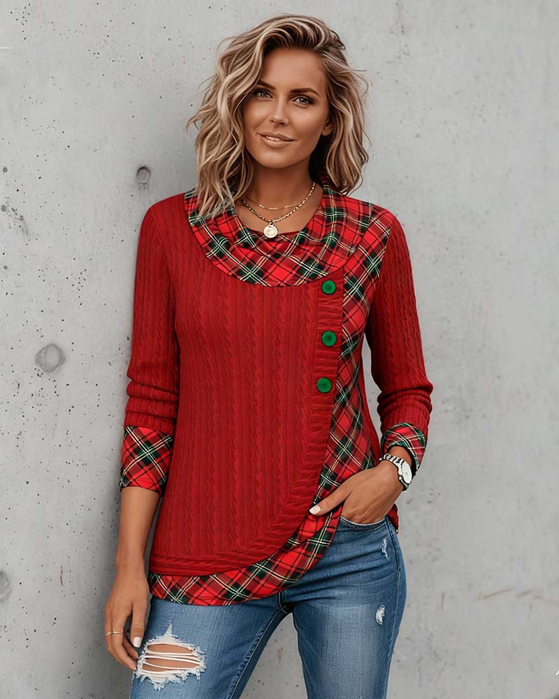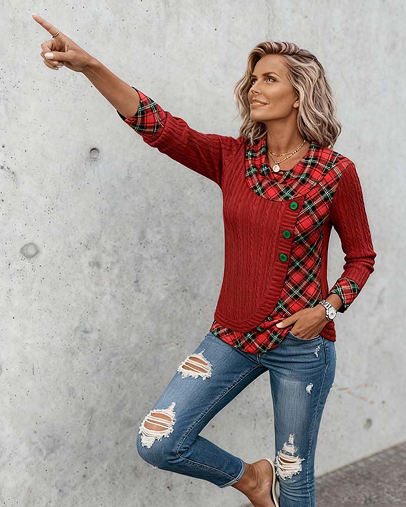 Icon1 Rutig Patchwork-Top Med Lång Ärm, Trendig Design