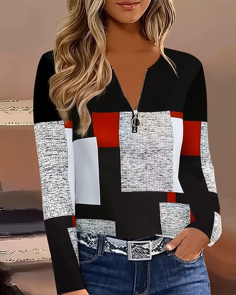 Icon1 Tryckt Casual T-Shirt Med V-Ringning Och Blixtlås