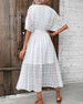SPECIFIKATIONER Stil: Elegant Material: Bomullsblandningar Klänningstyp: A-linje Klänning längd: Midi Urringning: V-hals_V Mönstertyp: Enfärgade Typ av ärm: Vanlig ärm Ärmlängd: Kortärmad Detaljer: Snöra upp Passform typ: Vanlig Säsong: Vår, Sommar, Höst Tillfälle: Dagligen Paketet innehåller: 1 x Klänning (Med bälte) STORLEKSTABELL(cm) ...
