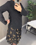 Elegant klänning med lapptäckta kronblad