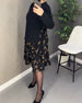Elegant tryckt klänning med genomskinliga ärmar