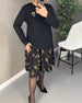 SPECIFIKATIONER Stil: Elegant, Fest Material: 100% Polyester Klänningstyp: Skiftklänning Klänning längd: Över knä Urringning: Rund nacke Mönstertyp: Enfärgade Typ av ärm: Vanlig ärm Ärmlängd: Långärmad Detaljer: Lappverk Passform typ: Vanlig Säsong: Vår, Höst, Vinter Tillfälle: Dagligen, Fest Paketet innehåller: 1 x Klänning STORLEKSTABEL...